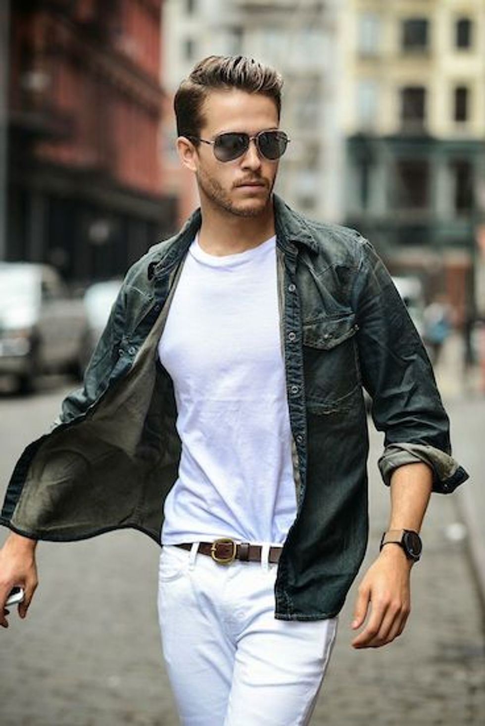 White denim is often seen as taboo in the man’s closet… mostly because many men don’t know how to dress with a bold white color. Fall is the perfect time to wear white because you can accent a dark bold earth tone with white.
