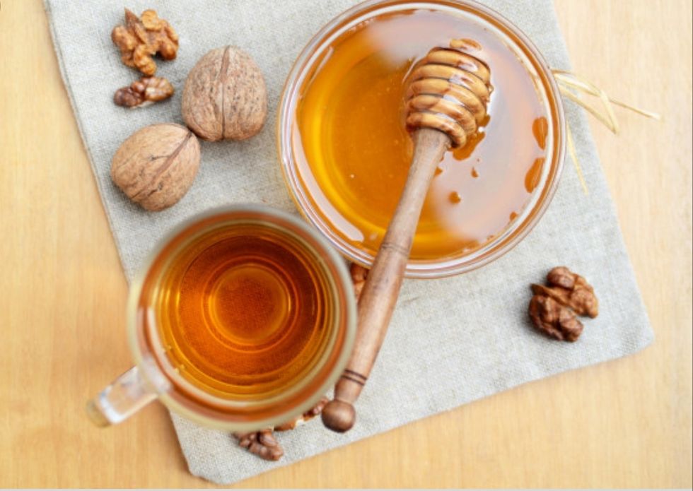 https://www.freepik.com/premium-photo/bee-honey-and-hot-tea-in-glass-cup-with-walnut-snack-on-kitchen-towel-overhead-top-view_1578114.htm