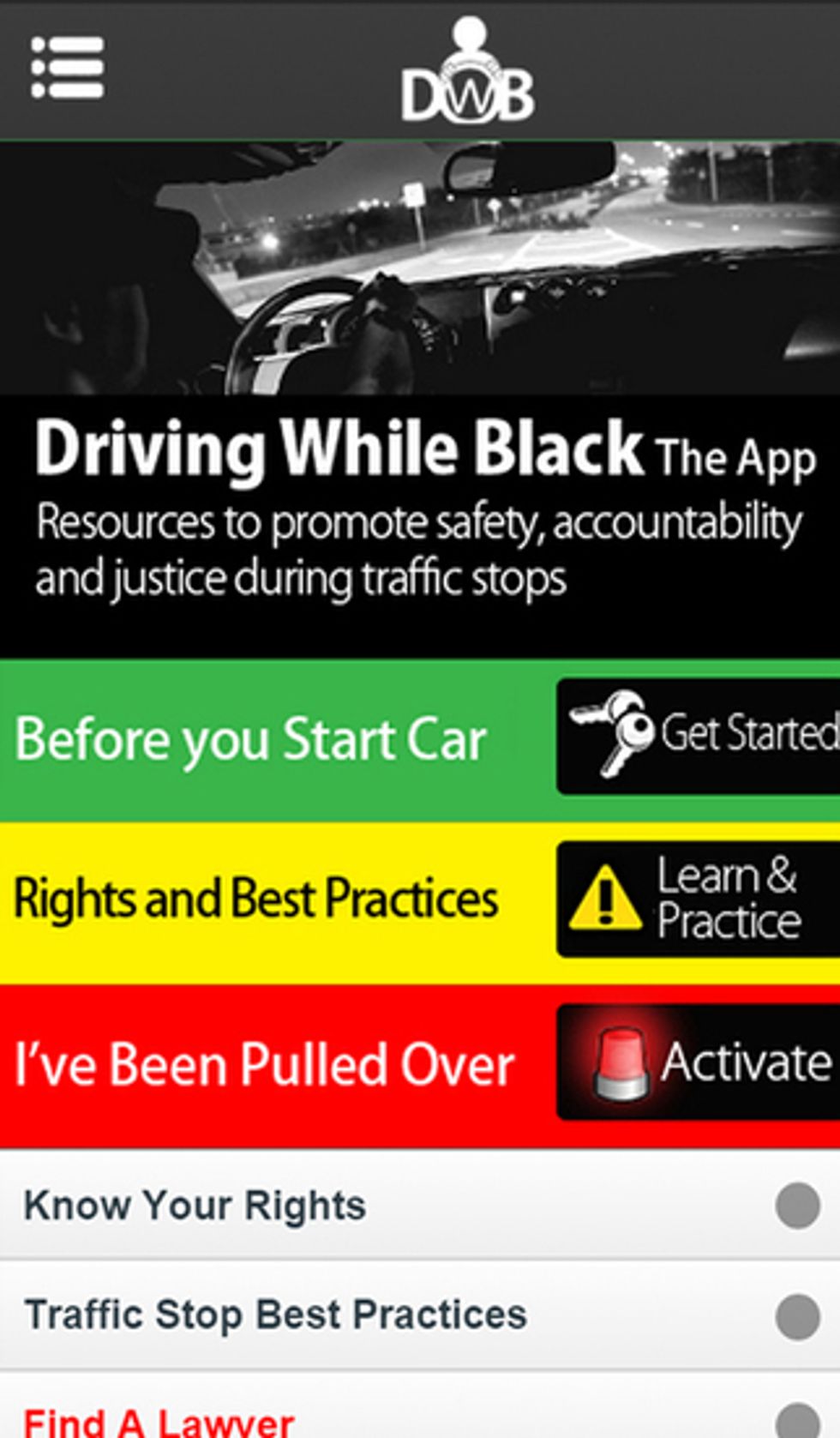The people with DWB The app believe an officers job is to protect and serve first. The creators understand that the officer and driver have stress and fear approaching the situation. The resources this app provides helps ensure a better experience. The knowledge you learn could even save you from a ticket.