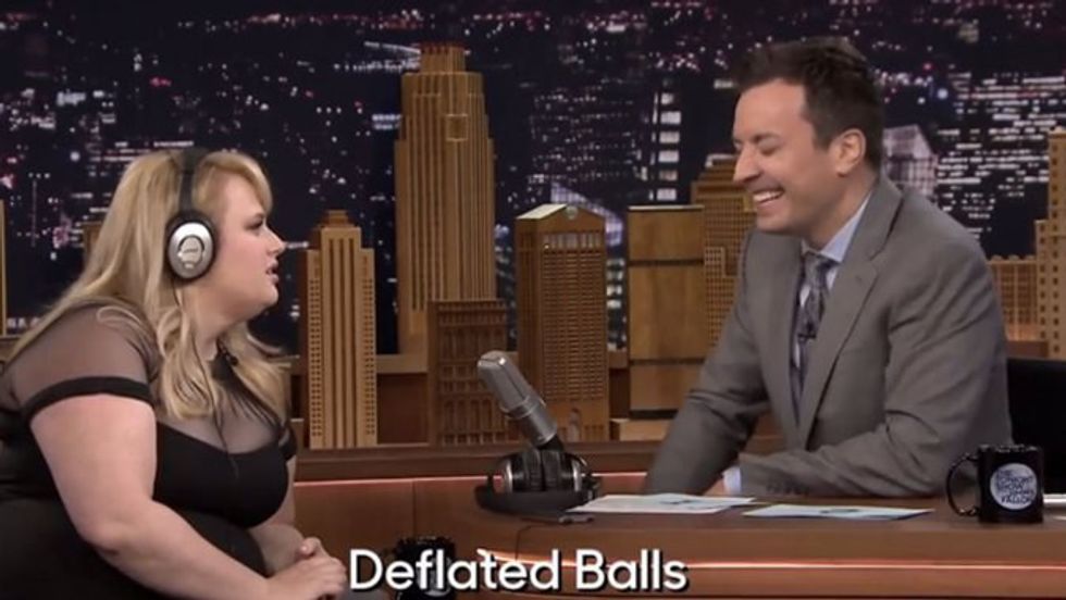 One person plays loud music with headphones on, while the other says a sentence. The person listening to music needs to try and repeat what they think they said.