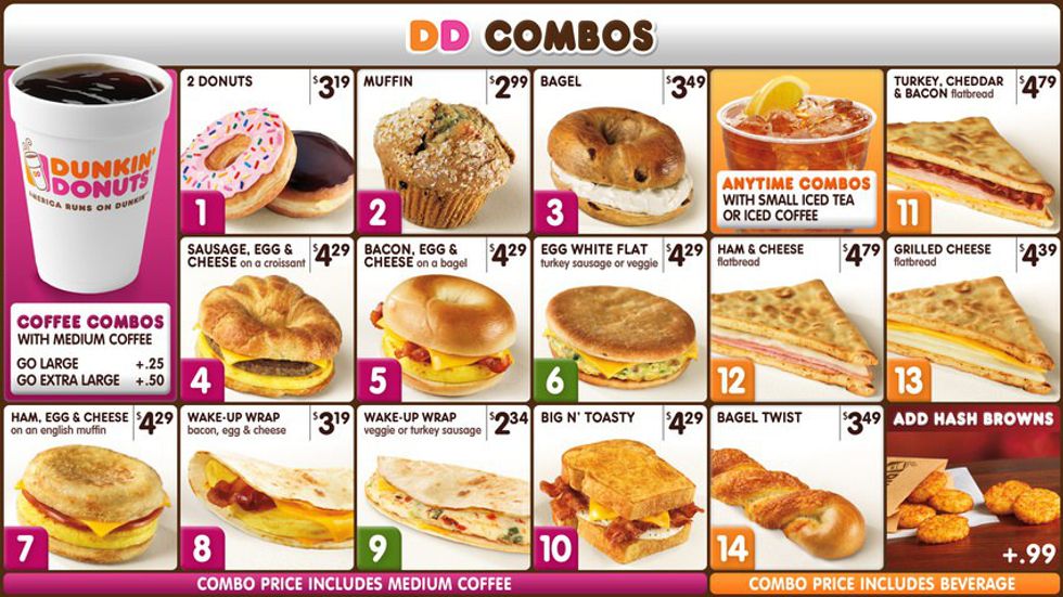 You can definitely get your money's worth at Dunkin. Five dollars can buy you more at Dunkin than it can at Starbucks. A large latte at Dunkin can retail at $3.69, while at Starbucks it would cost you about $4.32.