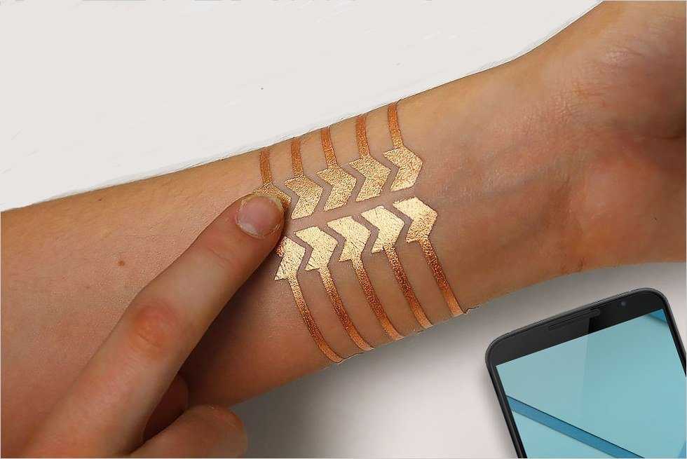 The idea behind DuoSkin is fairly simple: creating a personalized, temporary interactive surface from which a user can control various mobile devices, such as a smartphone. Creating a DuoSkin tattoo is simpler than most would think. Essentially, after designing and cutting out a circuitry design, you would apply gold leaf to its surface (an electrical conductor) and transfer it to your skin just as you would a normal temporary tattoo.