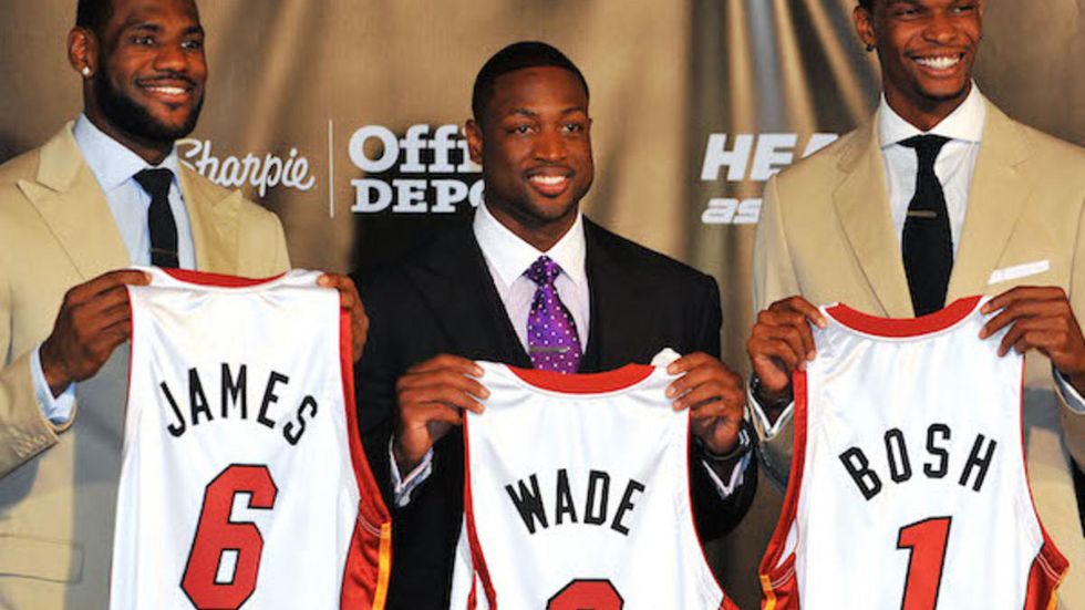 A: Okay this the biggest one and I have to save it for last, D Wade didn't recruit Lebron or Chris Bosh, they were all friends, it was more than basketball but at the same time, they all had one goal, they say Lebron started this super team, well did he? If that's the case D Wade didn't recruit, two what about that Boston team? They weren't drafted to Boston where they? Lol but at the end of the day, Miami got a great team put together because of the goat himself Pat Riley and got the right pieces and made it work twice the second go round.