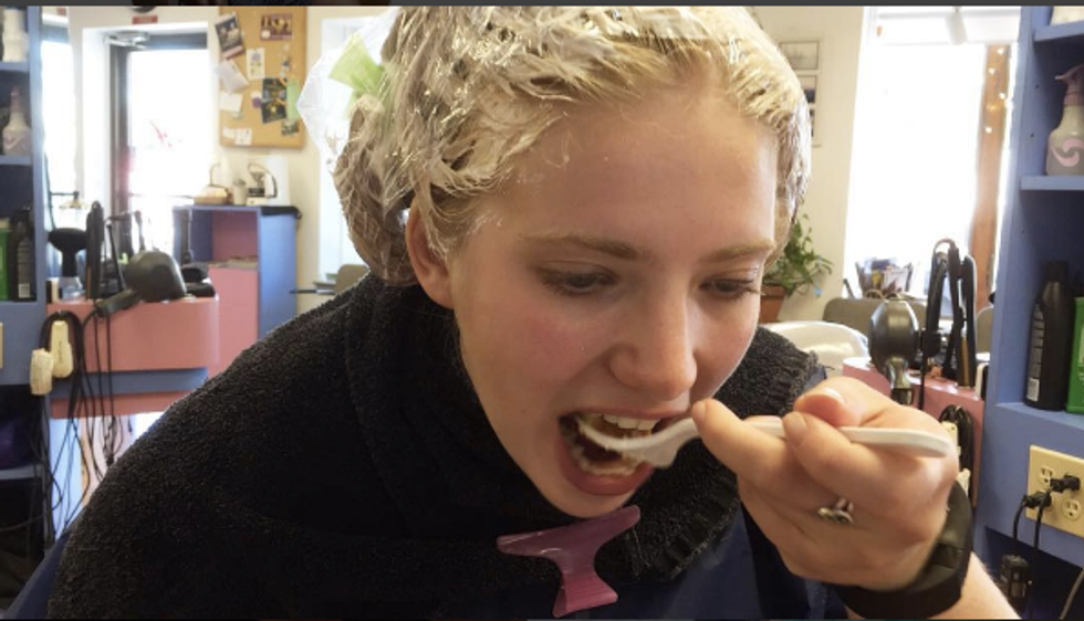 This article reaches you today from a sticky, vinyl salon chair in Media, PA where my hair begins its journey from jet black back into its natural blond. Waiting for a timer to go off, I look in the salon mirrors that surround me; floor to ceiling mirrors, mirrors in front of and behind me, mirrors that will come to disorient me in my four hours spent at this salon. I watch as my eyes become bluer and my cheekbones become more defined. I enjoy the gentle tingle of the bleach on my scalp and the hairdresser telling me about getting her vacation photos blown up to hang around her small mom-and-pop salon. My hair has only been in the hands of professionals four times, each time at a different place. While I have loved the results every time my hair has been done professionally, I wonder why people pay so much for their hair. My experience with black hair helps me know why: more dramatically than any other hair transformation I’ve experienced, people treated me extremely differently when I dyed my hair black this past April.