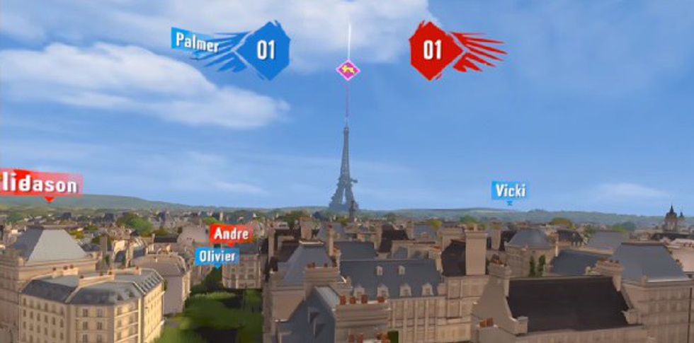 A live, three-v-three competition between creative director at Ubisoft Montreal Charles Huteau, inventor and founder of Oculus VR Palmer Luckey, head of publishing at Oculus Jason Holtman and three others demonstrated the game's multiplayer mode "Capture the Prey." The players simply had to grab a rabbit carcass and transport it to their team's nest. The players were able to dive and weave through the obstacles of a virtual Paris without problem, proving the natural comfort of the game's mechanic.