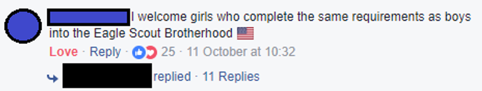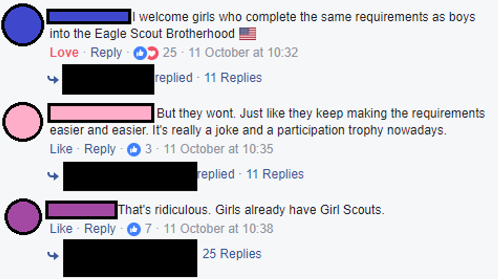 WOAHHH NOW. Why the hostility? Not only at letting girls join, but also at the organization itself? Not cool. Not cool at all. Apparently, some people have forgotten — or just chosen to ignore — the Scout Oath and Law.