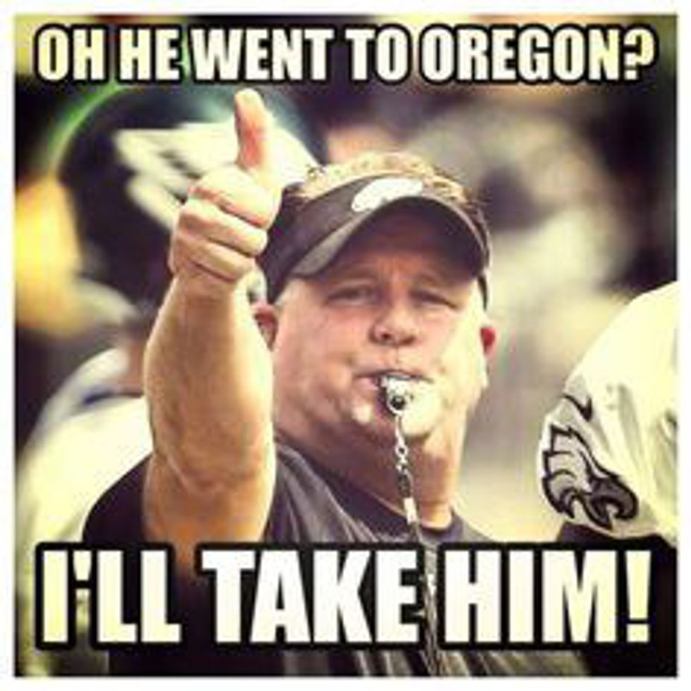 Chip then decided not to resign long-time Philadelphia linebacker Trent Cole and wide receiver Jeremy Maclin. In the end, Philadelphia is not so coincidentally home to nine University of Oregon alumni during preseason. What is this, the Philadelphia Ducks?