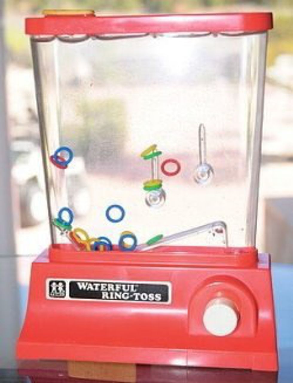 Continuing with the whole "serves no purpose" thing, here we have a nice toy where you press a button and try to get impossibly small rings to land. Even though it was frustrating, it was hours of entertainment. TBT.