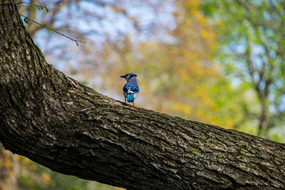 Since I was born and raised in Hawaii, I'm more accustomed to different types of flora and fauna.This photo holds special significance to me because of how foreign everything in it feels to me.The tree is not one that grows in Hawaii, the Blue Jays are nonexistent, and the leaves here are green year round.