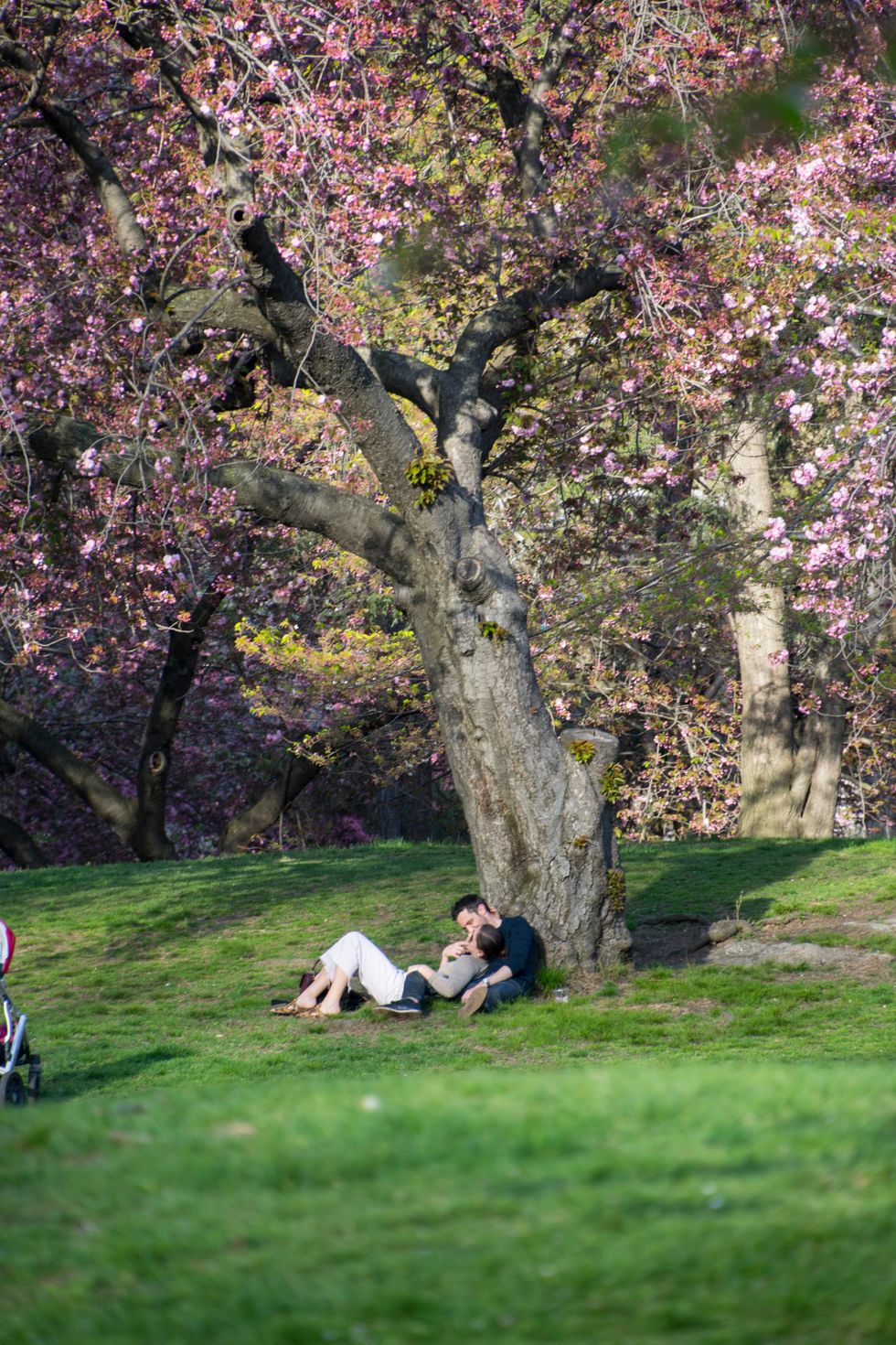 Usually in street style photography, I tend avoid taking pictures of peoples faces, and instead I try to convey ideas and themes.I believe that I have done that here.Everybody has a concept of the couple under a tree; all I did was take a picture of it happening.