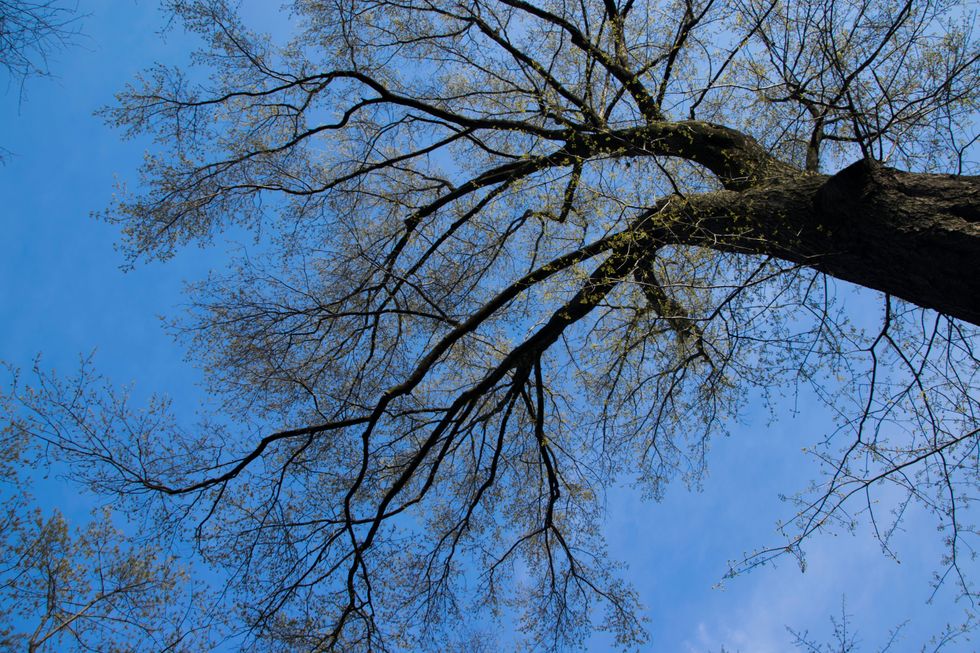 I like this photo because you can see all the branches and twists in the tree, but it's set against a bright blue sky and in warm light.It was still too early in the summer for the leaves to come out, but late enough that the weather was starting to warm up.