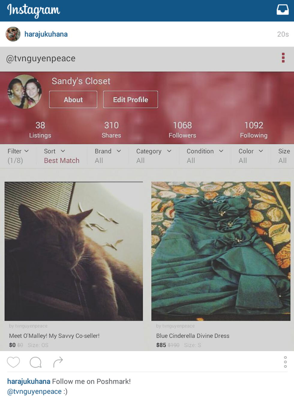 Once everything is squared away, a prepaid shipping label is sent via email to the seller who has under a week to send the item out. While the fee of $5.95 for buyers to see their item shipped out might seem high, it is a lot cheaper than Asos Marketplace and much less choosy in designer labels than oriented sites, such as Tradesy. Poshmark sellers keep a big chunk of change while the service gets a commission somewhere around a few dollars or so. For items ranging above $15, the split is 80/20.