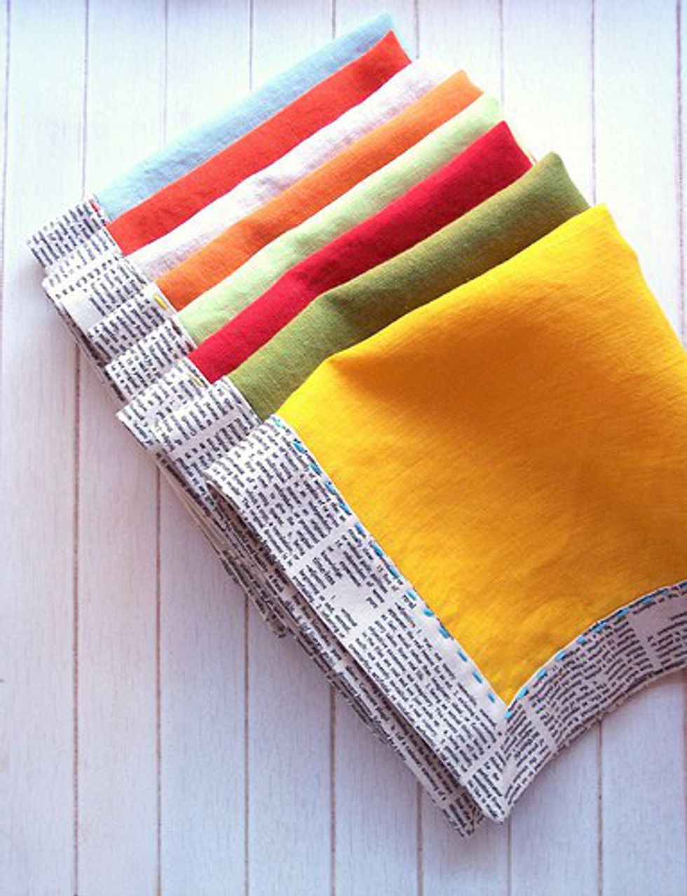 Get some cheap on sale cloth from a craft store, hem the edges, and presto a cheap cloth napkin. I suggest having a few around. If you're like me and only do laundry when you're out of clothes to wear then have more then a few. If you can do laundry every few days you might not need as many. When you do use them you will get rid of the paper napkins themselves and the plastic packaging for them. Then when the cloth wears out they can be dish rags, cleaning rags, dusting rags, and then years later be thrown out.