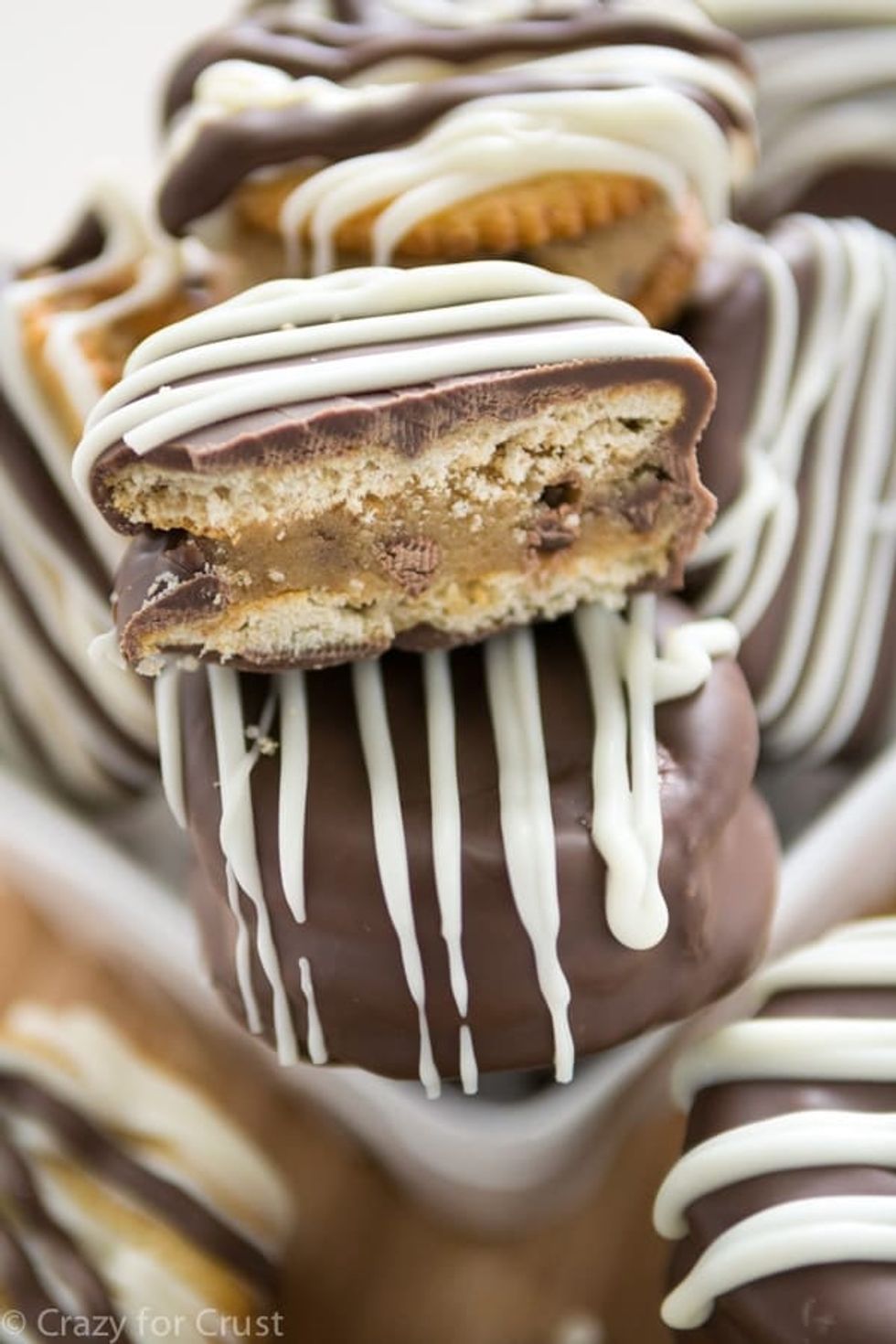 This one is sure to be a crowd pleaser! Not only is this dessert melt in your mouth delicious, it's pretty darn easy to make. All you will need is some chocolate chip cookie dough, a box of Oreos, and a muffin pan. Stuff the muffin pan with the cookie dough and place the Oreo on top of the dough. Finish it off by covering the top of the Oreo with a little more cookie dough. Then bake! as easy as that.