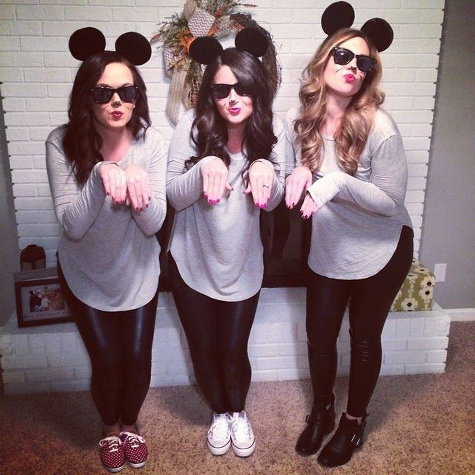 This costume idea is great for a couple of friends that want to go as a group. Girls can put on any neutral color shirt and pants, add some stylish mouse ears and pair it with dark sunglasses. To go the extra mile you can add a cane to really represent this fun costume.