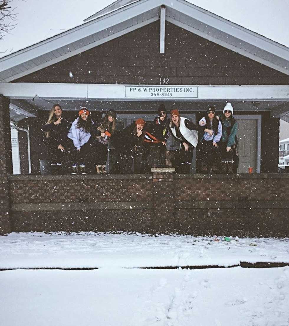 Several snowmen were built at off campus houses, by college students, of course. Friends teamed up to have snowball fights, and went inside to stay warm and catch up with friends afterwards, just like we used to do in grade school.