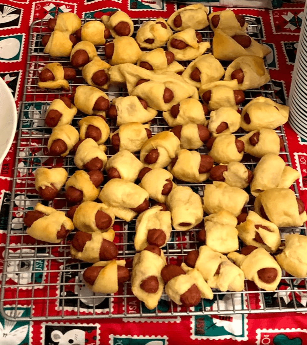 Cut up crescent roll dough and wrap around individual little smokies until you have a lot