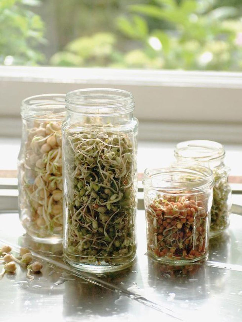 You can start your very own sprout garden in jars for a fraction of the cost of what you can find at the store. Just make sure they’re close to the window and get plenty of light during the day. (You can also do a simpler version on damp paper towels, like the experiment in school) Learn about how to do it here.