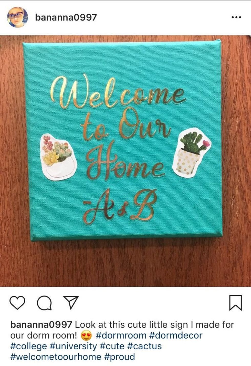 Choose your design and quote or picture. Go into this with at least a vague idea to make it easier for yourself. I chose to use a quote from one of my favorite TV shows, New Girl. Jess is always saying "Welcome to our home!" and I thought it was quite fitting for my dorm room. She is also my spirit animal so I had to work her in somewhere to make my room really feel like home.