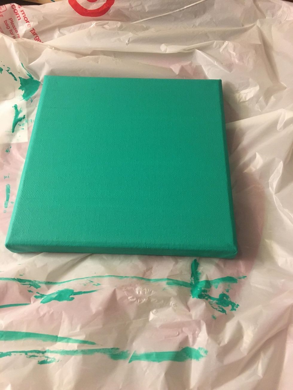 Again, I love the color aqua/teal/seafoam green/sea green/whatever else you can call it, so that's what I used. I used an acrylic paint, but I'm sure depending on your base other paints will work. Make sure you put something down like a newspaper or a plastic bag so you don't ruin your workspace.