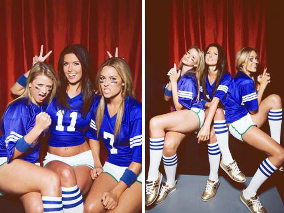 You'll be the least athletic football player in this outfit, but the most fashionable with the cropped jersey and high-socks!