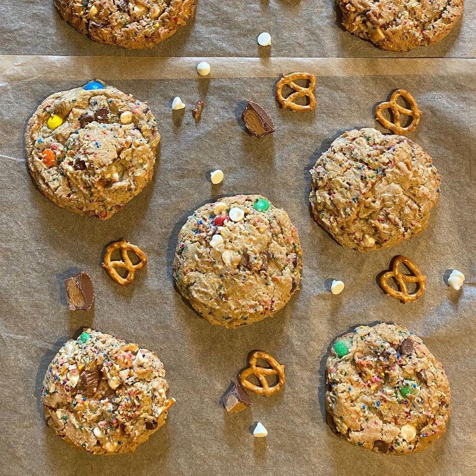 Even though the name of this recipe may sound unusual, these cookies are to die for if you love anything that combines salty and sweet! These cookies have peanut butter, chocolate chips, and sprinkles which makes them the perfect dessert item! The recipe from Delish is easy to use and requires only an hour of time to cook.