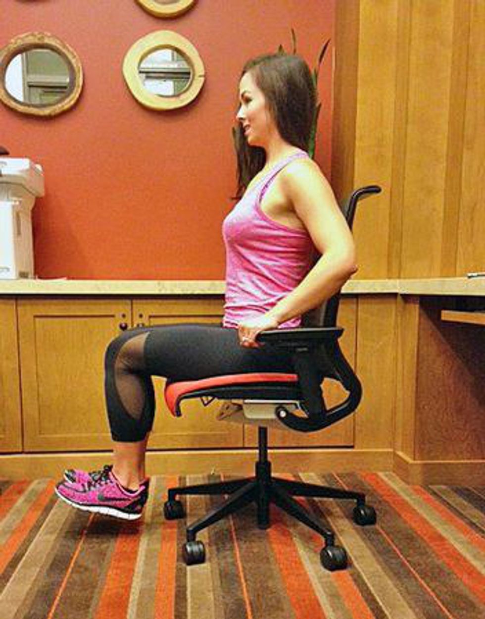 Do she got the booty? She will after doing this exercise. Simply raise slightly out of your chair and hold a squatting position for as long as comfortable. Make sure to keep your back straight and don't hunch over. Want an even more intense exercise? Try combining these chair squats with abdominal squeezes to really feel the burn.