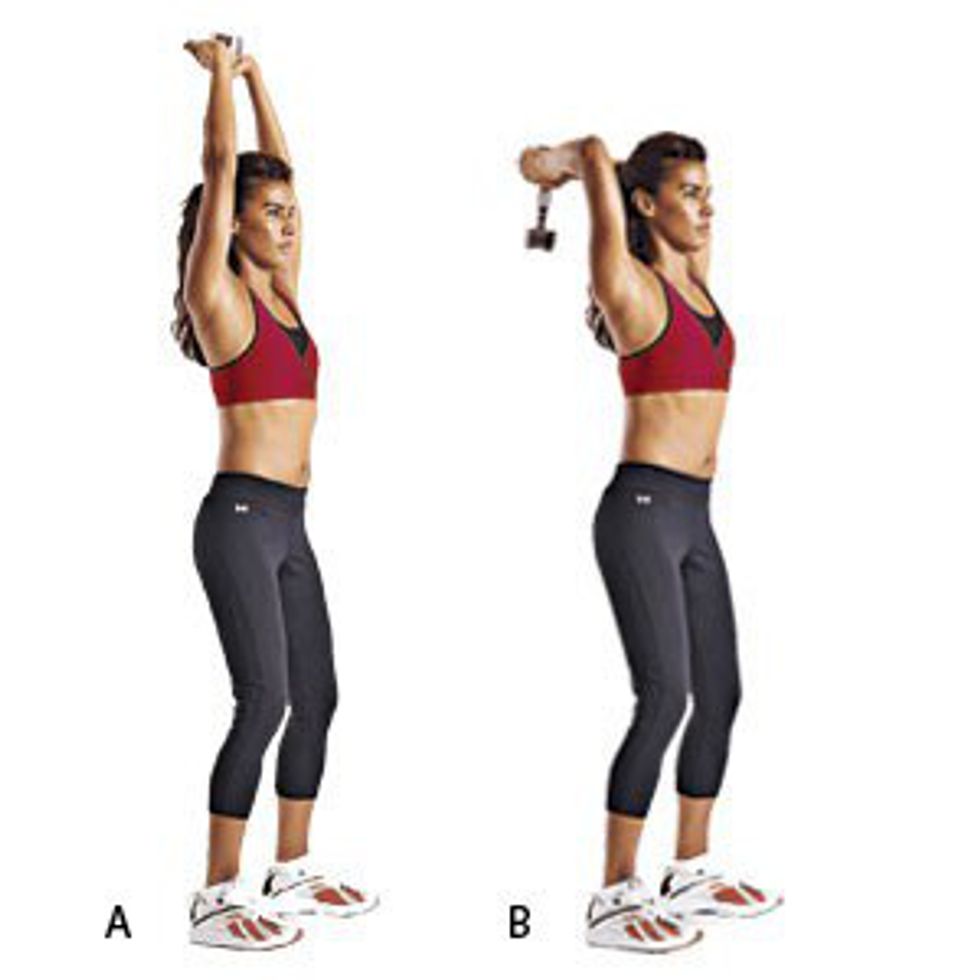 Use your textbooks to put more than your mind to work. They can easily be turned into weights. Hold a book behind your head, extend your arms up so the book is over your head and return to the starting position.