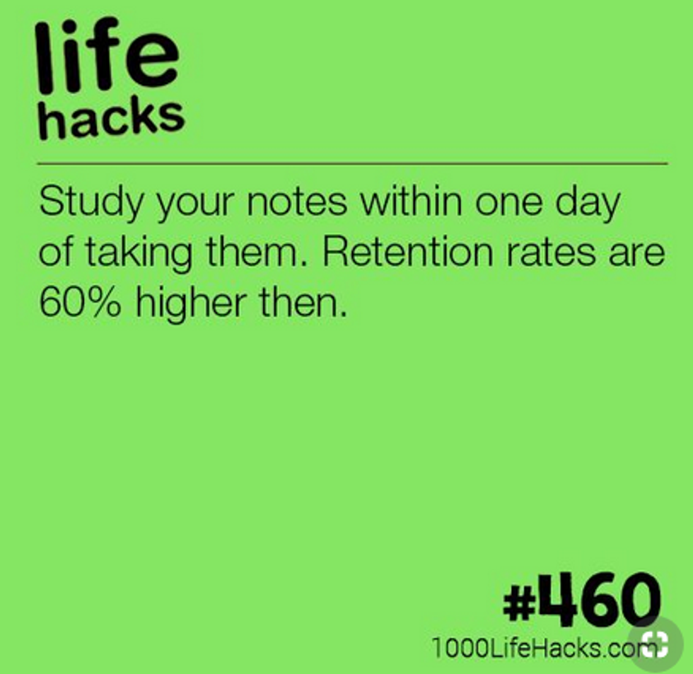 Not only does studying at certain times of day increase your retention rates but studying your notes within 24 hours of taking them is another way to increase your retention rates even more!