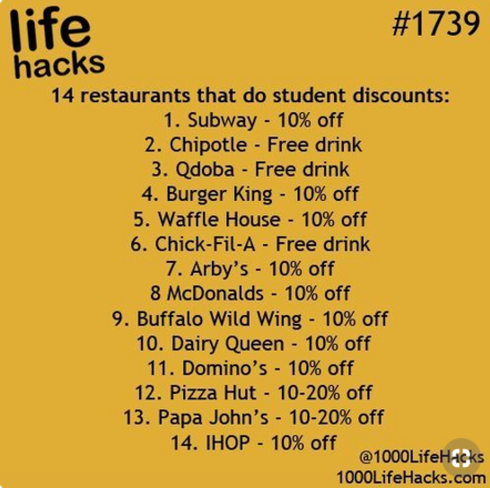 College can be an amazing life experience. You can make so many new friends and awesome memories. However, sometimes adjusting to college life is not easy for anyone. Whether you are a freshman, senior, or a non-traditional student, college can be a real struggle. Sometimes even the simplest thing, like a discount on a meal or advice on the best way to study can be a lifesaver!