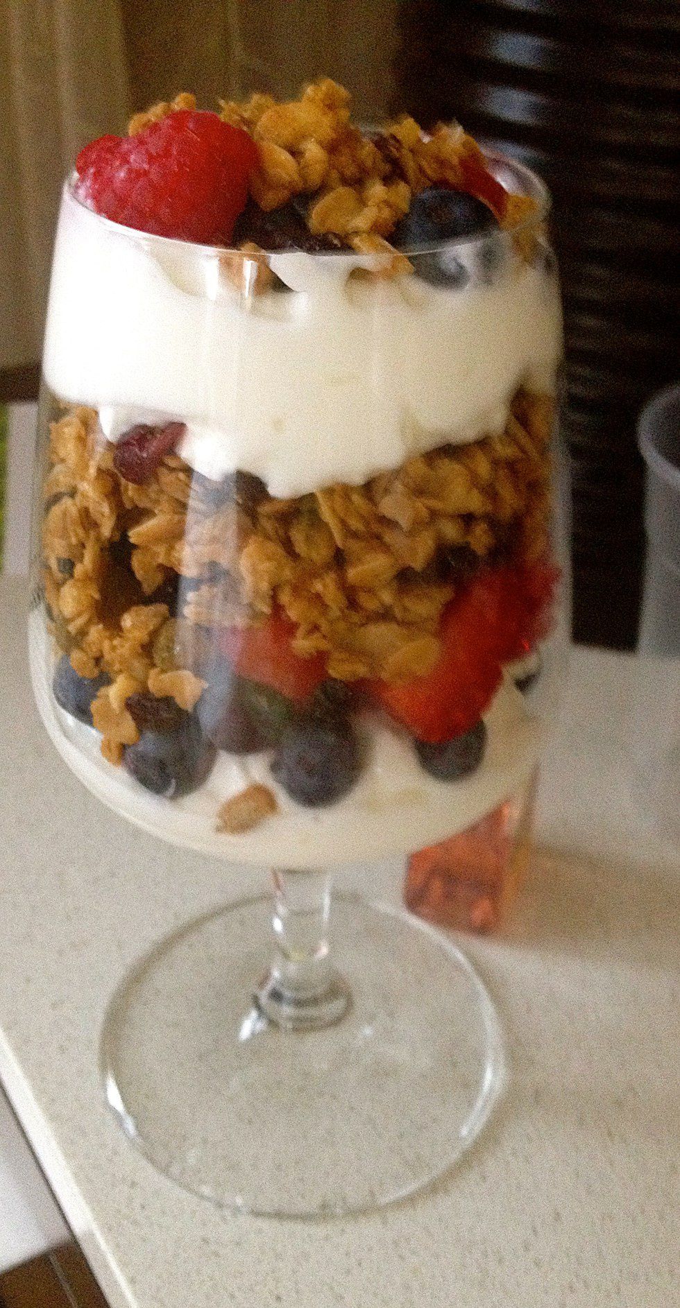 If you have access to a blender, fruit smoothies are a great breakfast option. The possibilities are endless. I put plain Greek yogurt, some frozen fruit, honey and milk into my smoothie, but you can add anything you want. I recommend frozen fruit because it keeps longer and also gives you a nice, cold smoothie. This is another breakfast you can enjoy on the go.
