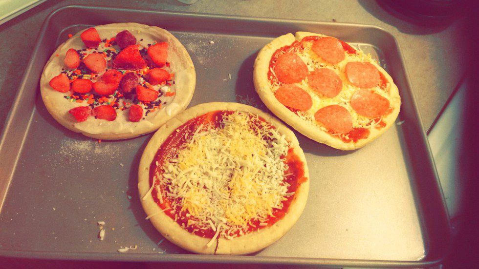 Buy an already-made pizza crust and add your favorite toppings! Put into the oven at 400 degrees until golden brown or the cheese is fully melted. This is also a fun dinner idea to do with friends! You can purchase a large pizza crust for everyone, or individual sizes to make your own personal pizza. You can even make extras to put into the freezer to save for later in the week.