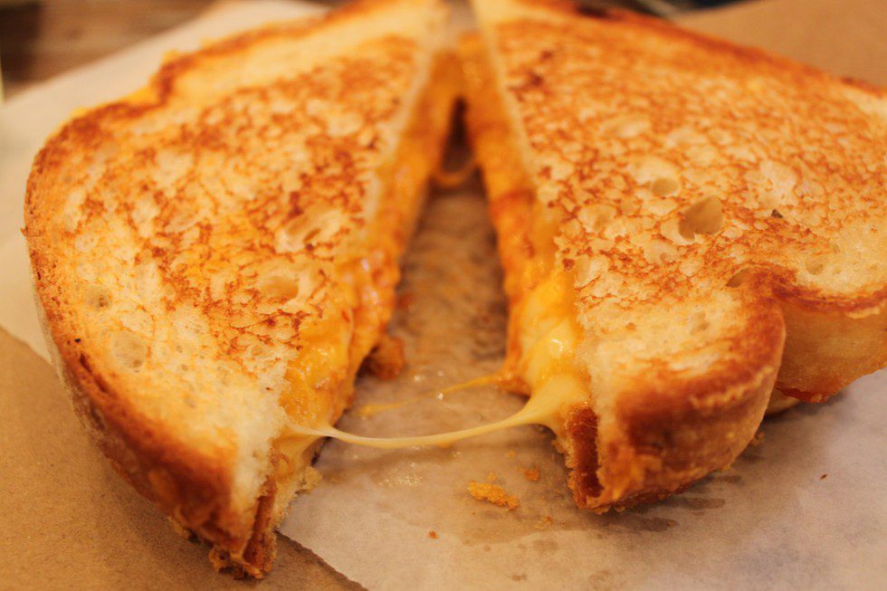 You can't go wrong with a grilled cheese sandwich. Add your favorite cheese and even some added toppings if you like. I enjoy tomatoes and pickles on mine. Put into a buttered pan and cook until brown on each side. Slice that bad boy and bask in the glory of the gooey cheesiness.