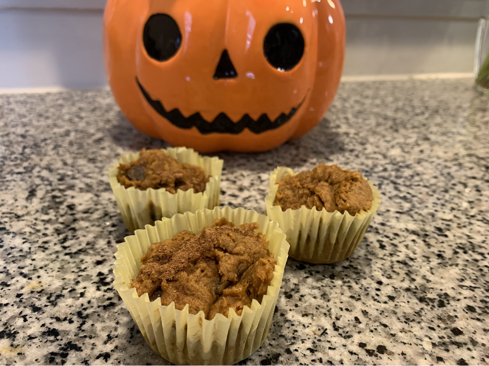 I got this recipe from my cousin Jessie several Thanksgivings ago! They're easy to make and delicious! They are so light, fluffy, and actually healthy! They are egg and dairy free, so perfect for people watching their calories. These are great for a grab-and-go breakfast paired with a banana or apples and cinnamon. I tried them with the new Spiced Pumpkin Pecan Blue Bell Ice Cream flavor.