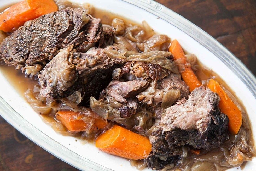 Truly one of the cornerstones of the working man's diet, the humble pot roast is a meal that's easy to prepare and is cooked throughout the day in a crock-pot or other slow cooker. This method frees up your day to make room for other obligations and results in a hot meal waiting when you return.