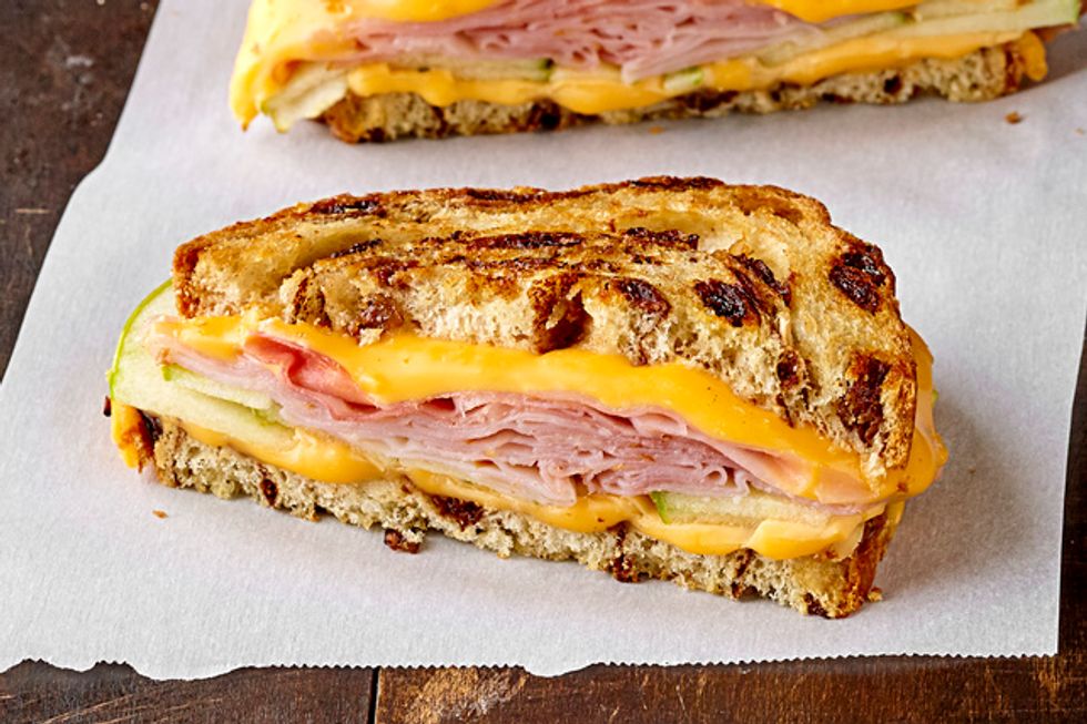 For more step-by-step instructions, visit: http://www.kraftrecipes.com/recipes/grilled-cheese-ham-apples-210132.aspx