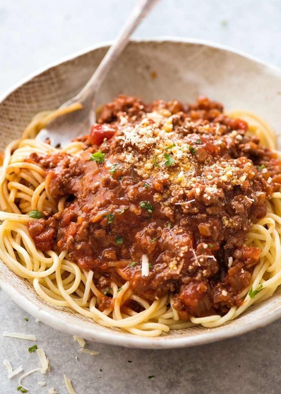Step 5: Plate your spaghetti and top with your fresh bolognese sauce.For more step-by-step instructions, visit: https://www.recipetineats.com/spaghetti-bolognese/