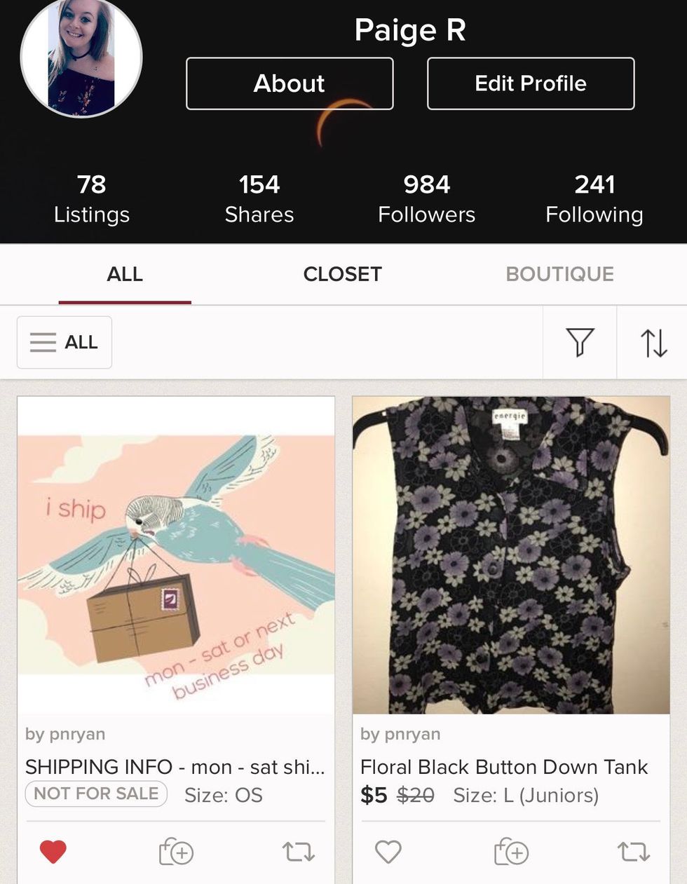 Clearing out your closet has never been easier. I use the consignment app Poshmark to reach a wider audience. Poshmark is really user friendly: you don't have to pay out of pocket for shipping! You set the prices yourself and Poshmark takes a small percentage of your earnings. Then they send you a prepaid shipping label and all you have to do is send the package. The funds will be released to your account once the buyer receives the item. I like the peace of mind that comes with using this app. And one nice thing is that you can transfer your earnings right into your bank account, or use it as credit to purchase from other sellers.