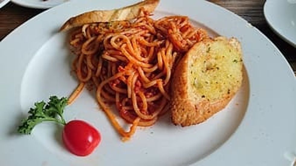 Spaghetti (we use angel hair pasta instead), Baguette, Red Chili, Olive Oil, Parmesan, Parsley, Lemon Zest, Salt/Pepper