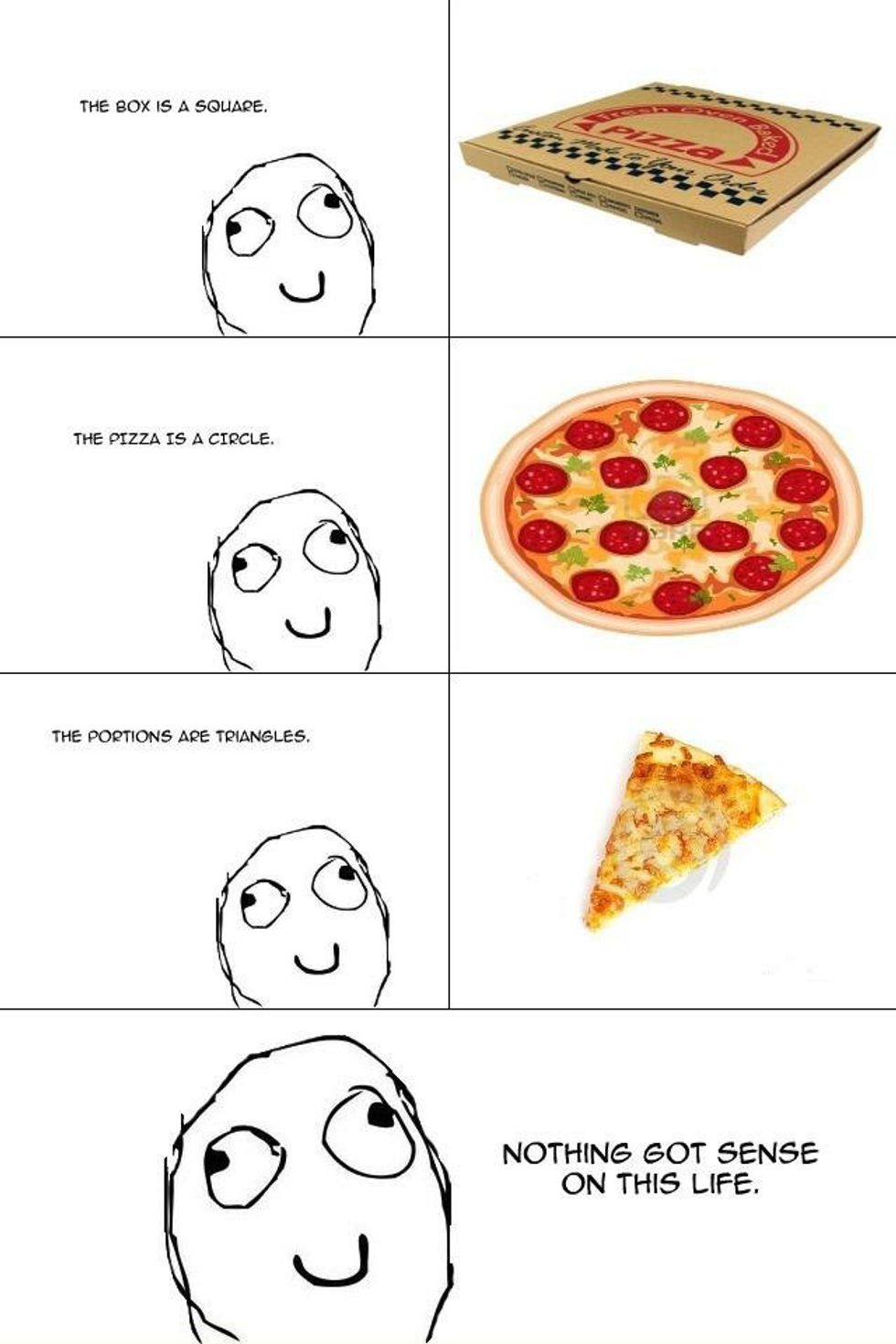 17. Why is a pizza box a square while the pizza is circular and the individual slices are triangular?