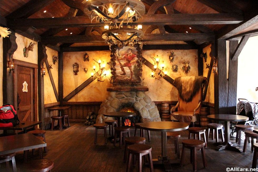 Right around the corner is Gaston’s Tavern which is a quick service restaurant known for its amazing cinnamon rolls and LeFou’s Brew! LeFou’s Brew is basically a frozen apple juice slushy with passion-fruit foam on top. It sounds really weird but trust me, it’s fantastic. It’s great for a hot afternoon or when you just need a snack!
