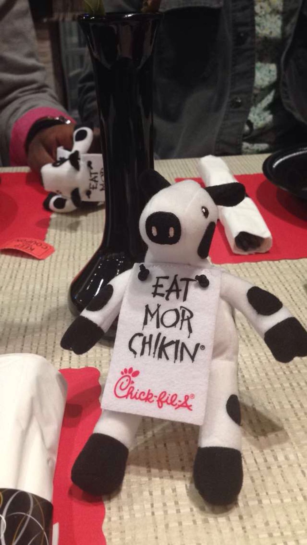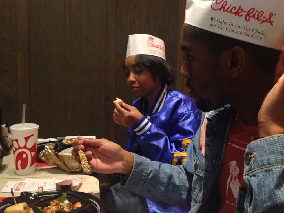 While some of us sat at our table admiring the display of roses with "Chick-fil-A" stamped across them, others went to take photos with the massive cow mascot. One of the workers came up and offered us a tour of the back, we enthusiastically said yes and followed her to the back. They gave us hats and we learned of how fresh and rich all the ingredients at Chick-fil-A are! The produce is always fresh, meat is prepared that day, hot and ready biscuits, ingredients are the best name brands; they do not take shortcuts or mind buying the best for their costumers —which was apparent after the tour when we sat down for what was one of the best free meals I have had in a while.