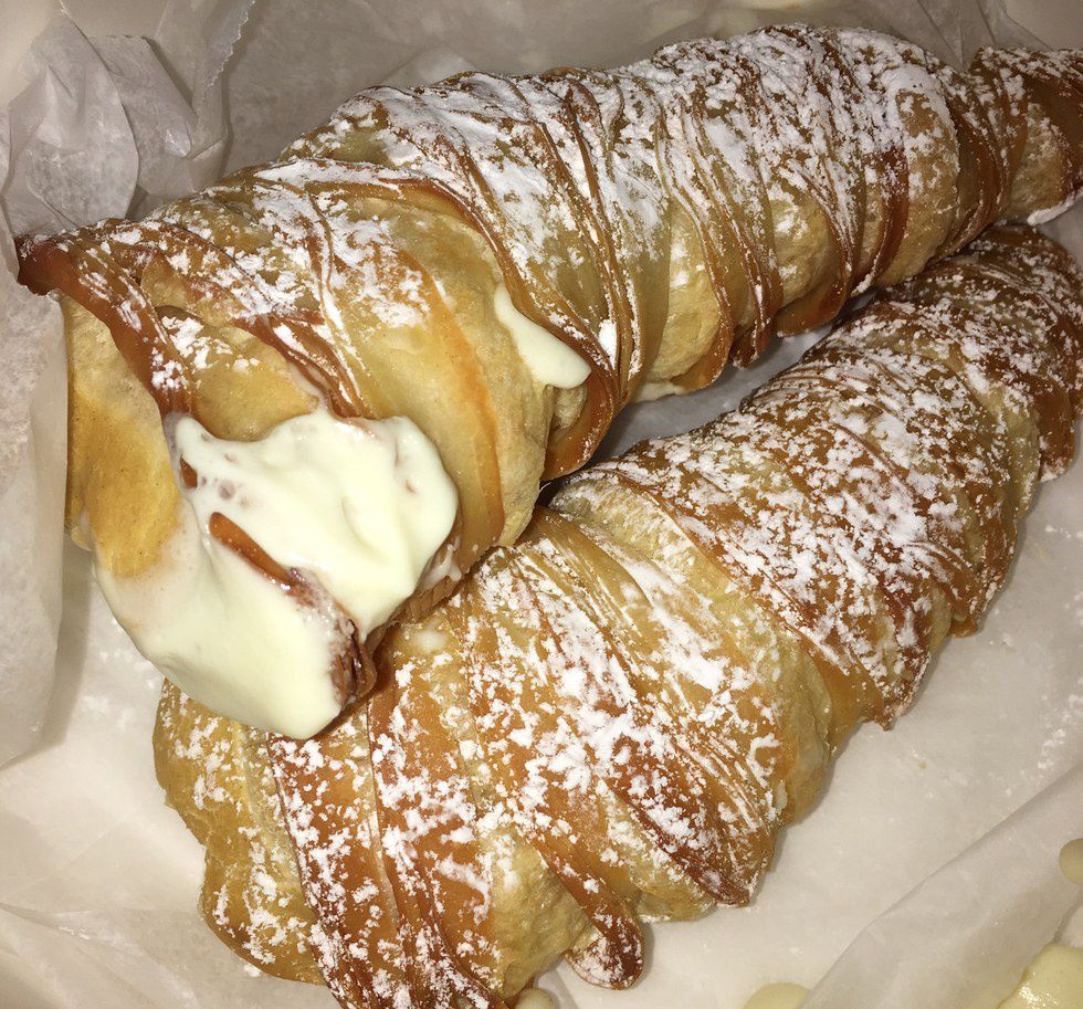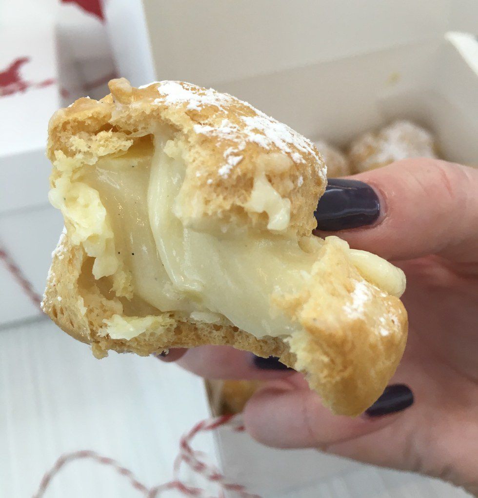 Right off the bat, we knew we had to get a dozen cream puffs. Stuffed with Carlo’s signature vanilla custard and sprinkled with powdered sugar, this little pillow of decadence is nothing short of big flavor. And don’t even think you can get by with just eating one…consider this your warning.