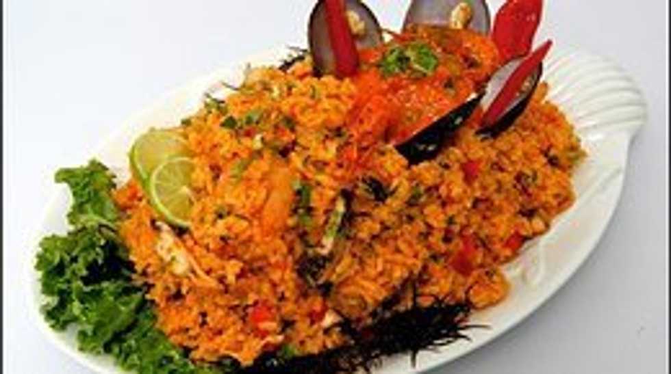 Arroz marinero or seafood rice is similar to paella and it is made with rice cooked in seafood broth and sautéed with shrimp, clams, squid, bay scallops, onions, garlic, bell pepper, cilantro and spices. The dish is a mix of seafood served over poblano rice. Arroz marinero is usually made with a long grain rice, achiote or annatto which gives a slightly reddish color and a subtler earthier taste than paella. With the abundance of seafood provided by the coast and most of Ecuador's rice coming from areas near Guayaquil. Naturally, seafood rice became a staple.