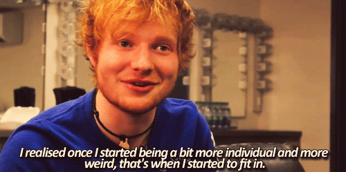 Ed Sheeran is proud of where he comes from and who his family and friends are. This is clearly able to be heard in his song, "Castle on the Hill," when he tells the story of his close friends that he grew up with. He stays true to who he was raised to be and doesn't let fame affect the way he acts or treats others. There are a lot of ways one could get trapped in the hub of the music industry, but Sheeran doesn't let anything get to him or change his attitude and stays true to himself. He loves everything about who he is and recognizes that he has flaws, but loves that about himself. He doesn't live the "mainstream celebrity" life and stays connected to where he comes from.