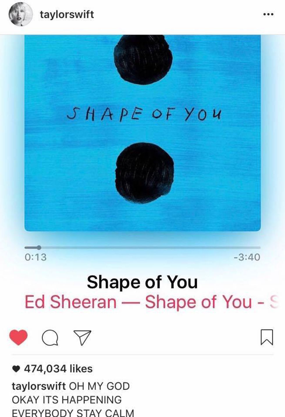 Taylor Swift, whose beautiful song “Everything Has Changed” featured Ed, posted her reaction on Instagram, which is basically the reaction of every avid fan right now.