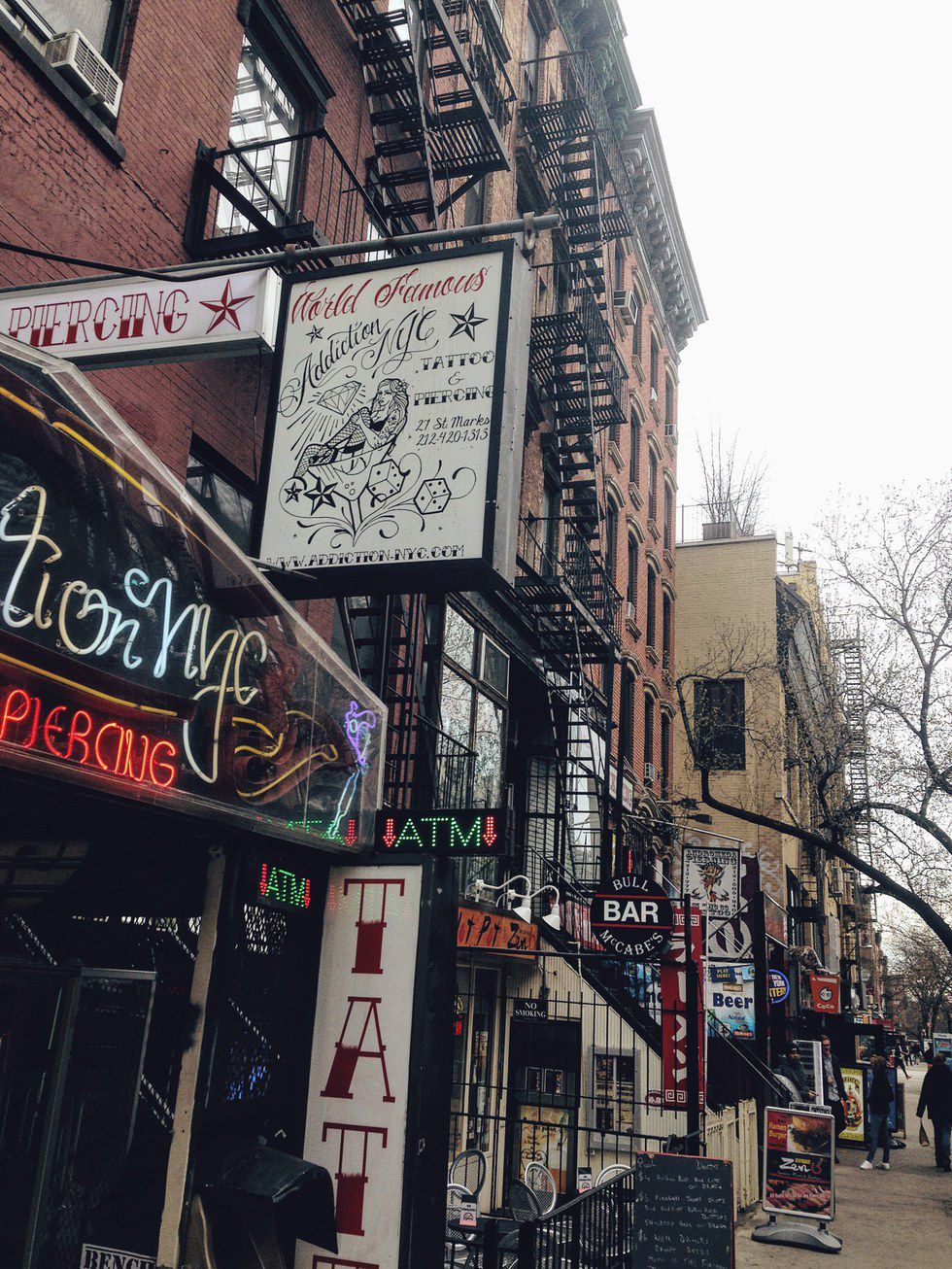 A punk kid's dream, this historic East Village street was the home of Manhattan's rockers and drug addicts in the '70s and '80s... As well as a place for beatniks and iconoclasts to hang out in the '50s and '60s. It's a bit more mainstream now, but it's still a cool place to take a walk. If you're a fan of "Friends," you can even go to 'St. Mark's Comics' and commemorate Ross being mugged as a child... Also, it's a cool place to be pierced.