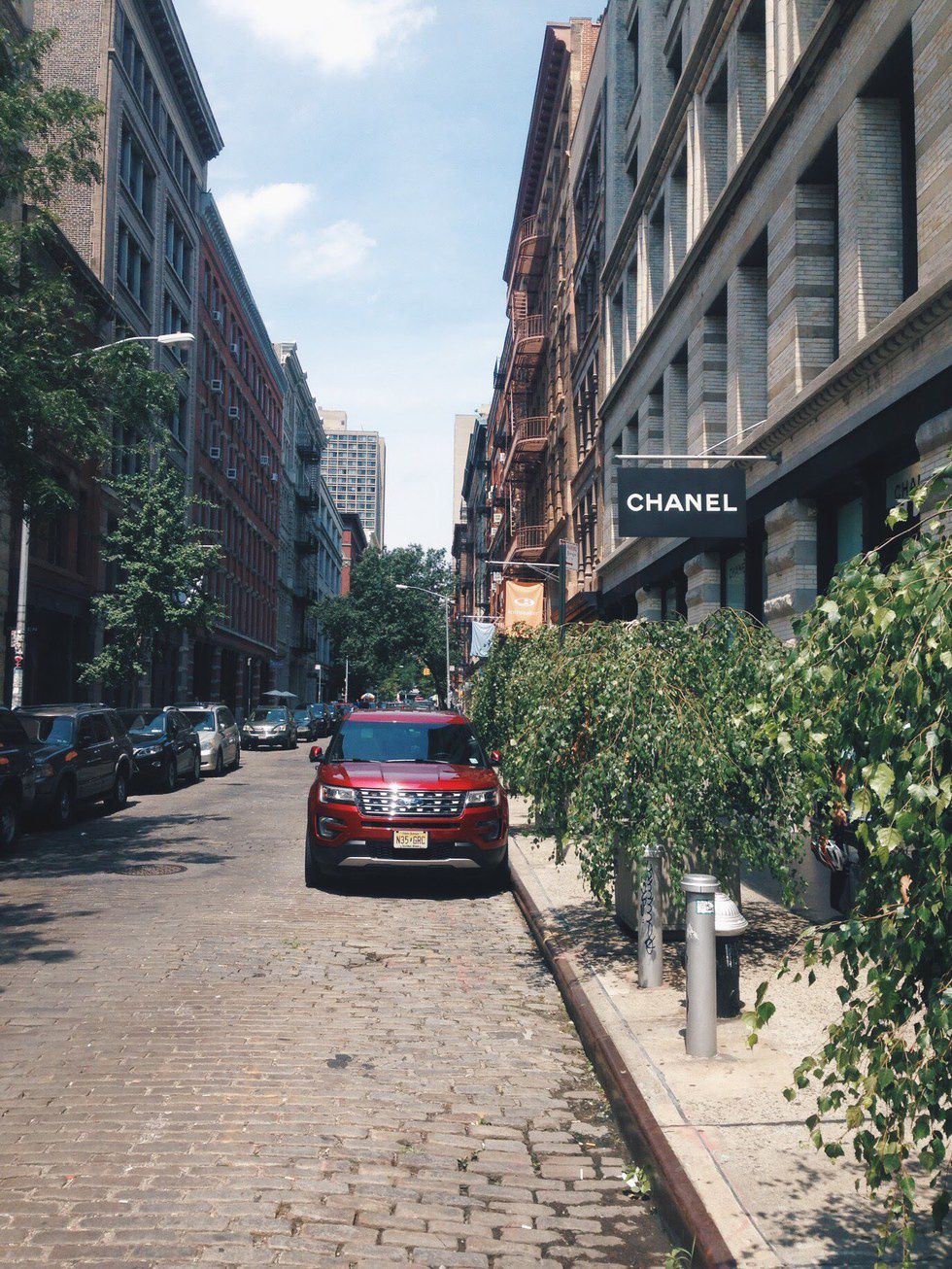 If you're into fashion and photogenic cobblestone roads, SoHo is the place for you. There are less expensive alternatives, like 'H&M' and 'Forever 21' mixed in with 'Topshop' and high end stores like 'AllSaints,' so you don't need to be rolling in cash to spend an evening. It's also quite close to Little Italy and Chinatown, so you've got a lot of food options.