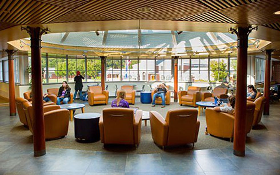 The piazza has always been my absolute favorite spot on campus, from the first time I toured Quinnipiac. The fireplace in the wintertime is a huge plus and is definitely a nice touch when you walk from your dorm to the Student Center and are absolutely freezing. It's no surprise that so many students choose the piazza as a place to hang out with friends between classes, eat lunch, have a meeting, etc. Plus, it makes for a nice spot to catch up on Netflix (er, do homework ...) with the comfortable chairs!