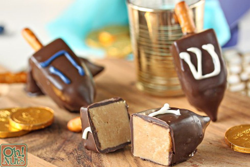Find the recipe here: http://www.ohnuts.com/blog/peanut-butter-fudge-dreidels-recipe/